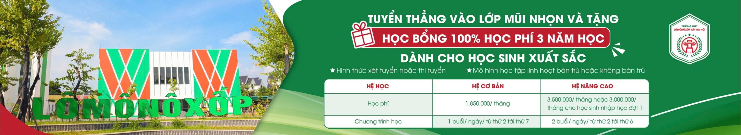 Kính chào Quý phụ huynh và các em học sinh! I. Trường THPT Lômônôxốp Tây Hà Nội tuyển sinh vào lớp 10 năm học 2026-2027 với chỉ tiêu 7 lớp: Chỉ tiêu 01 lớp chọn: 30 học sinh Chỉ tiêu 03 lớp hệ ...
